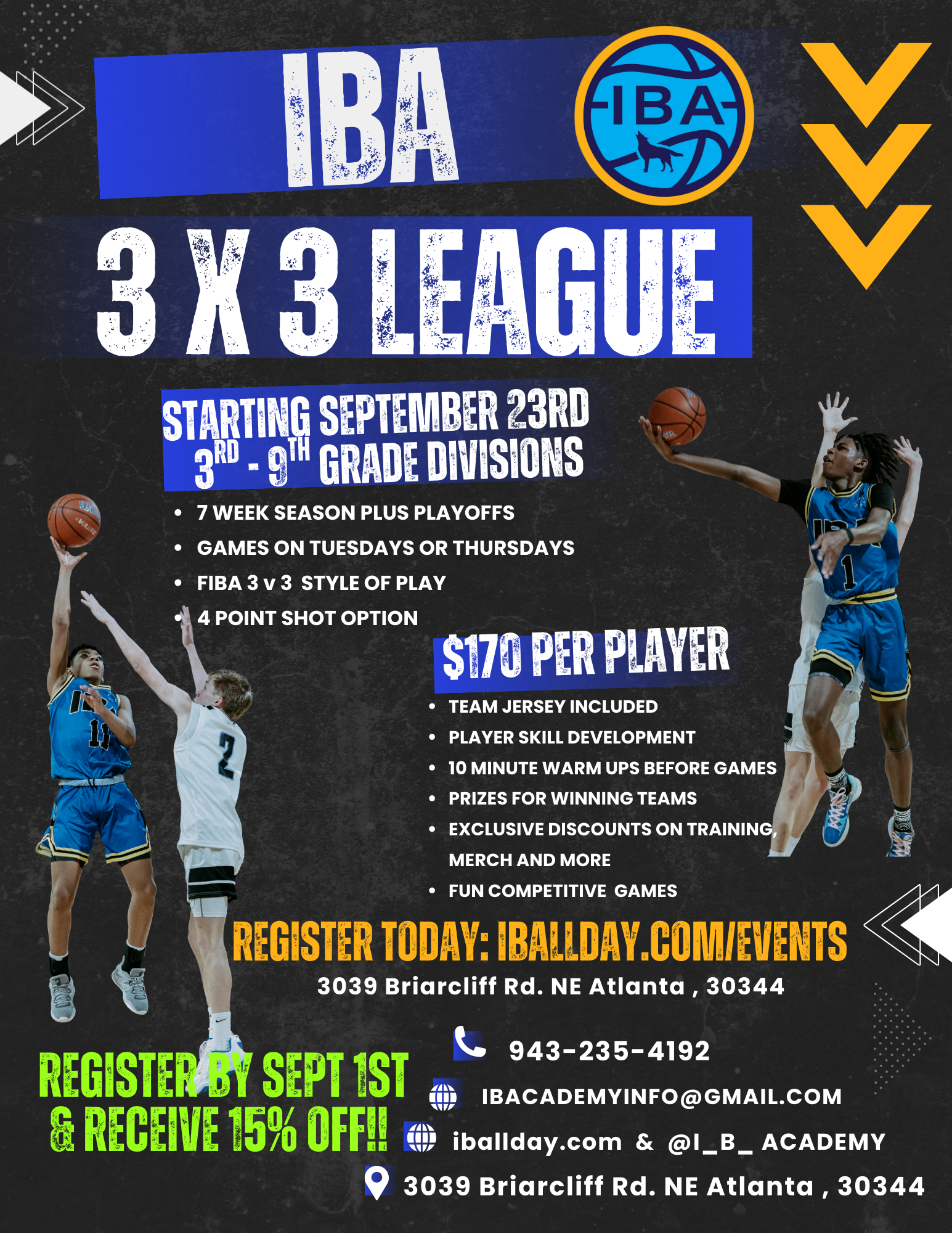 3x3 League Thursday, September 25, 2025 5:00 PM 6:00 PM 3039 Briarcliff Road Northeast Atlanta, GA, 30329 United States (map) Google Calendar ICS